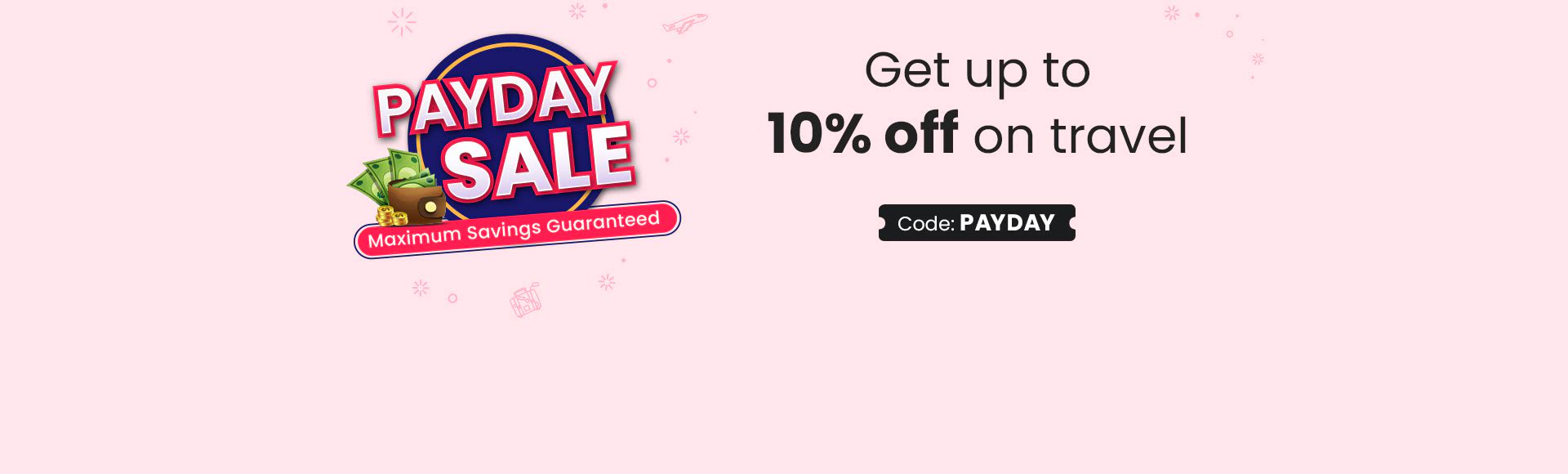 Use Code: PAYDAY to get a discount of up to 5 USD & an additional Rehlat Money cashback of up to 5 USD on your flight bookings. Get flat 10% off on hotels too. Book Now!